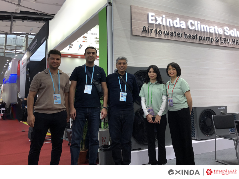 The 134th session of the Canton Fair was a resounding success for Exinda. As a leading manufacturer specializing in heat pump solutions, Exinda showcased its full range of heat pump products at the exhibition, including the R290 residential heat pump, swimming pool heat pump, and the debut of a new HRV & ERV ventilation system.
