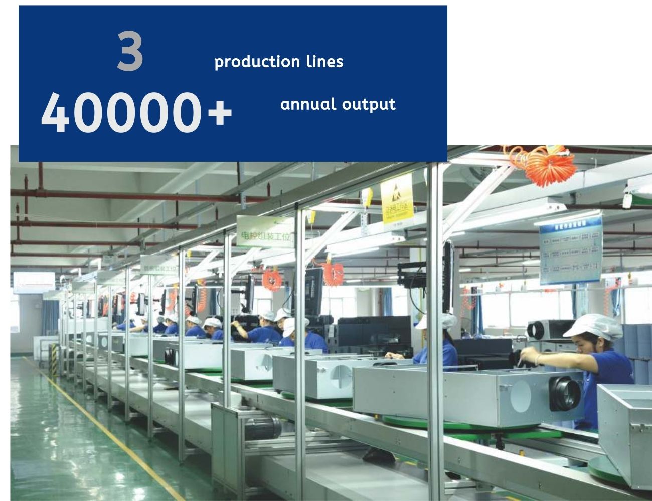 Exinda group supply to ventilation systems with HRV/ERV ventilatior products. The ventilation range including residential and commercial, with capability of productin yearly with more than 40,000pcs
