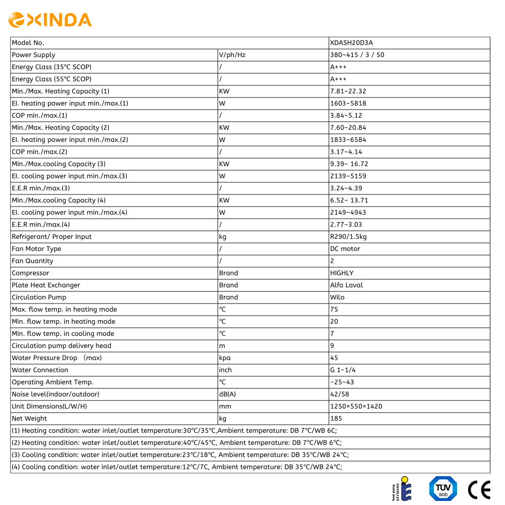 Exinda heat pump are Keymark, MCS, TUV-ERP, CE approved.