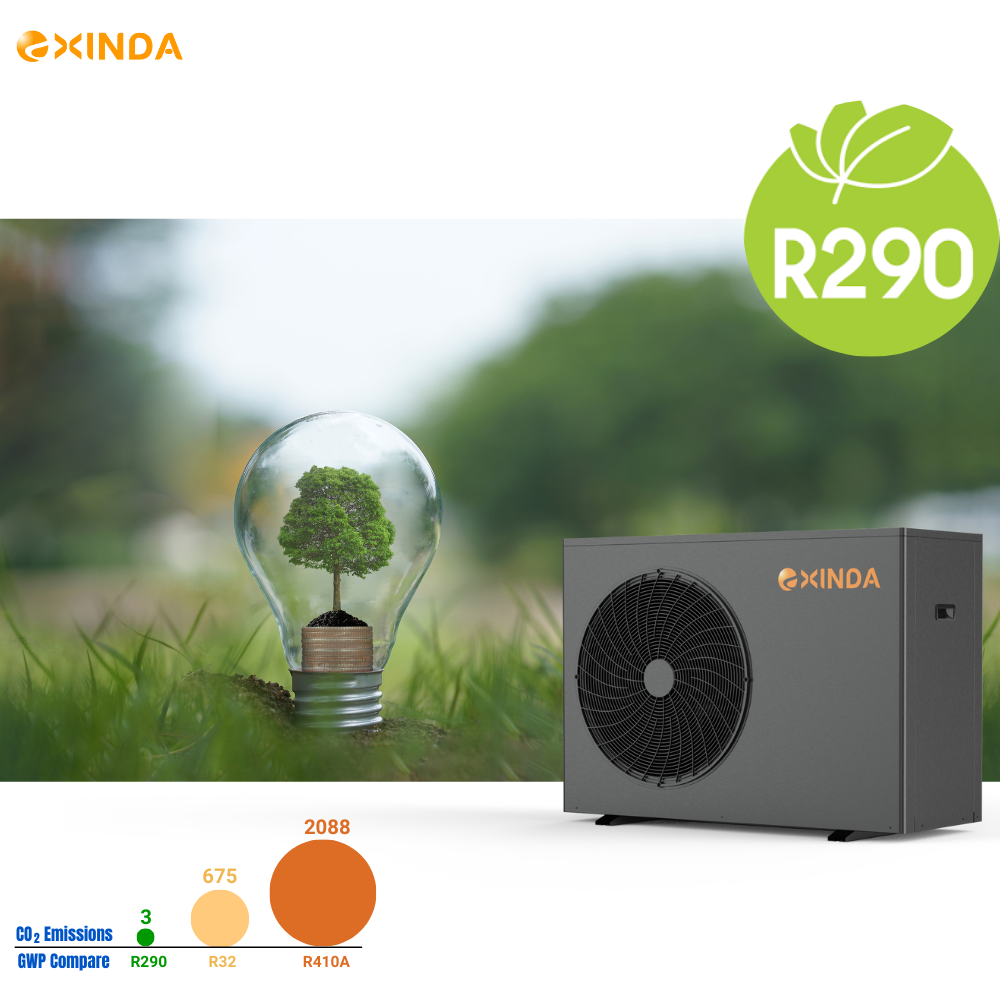 Exinda uses the R290 refrigerant in its heat pump devices. It contributes to the reduction of carbon dioxide emissions and helps achieve the global goal of carbon neutrality.