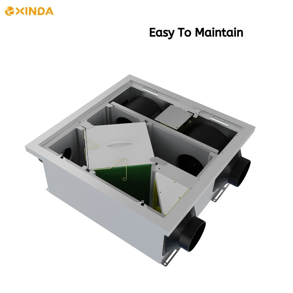Conception peu encombrante : le système de ventilateur à récupération d'énergie s'intègre parfaitement dans les espaces restreints, idéal pour les appartements et les petits bureaux, sans compromettre les performances.