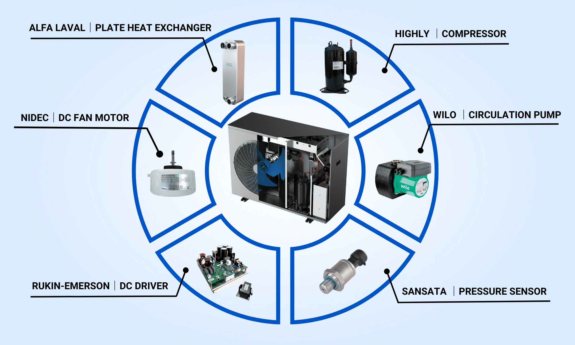Exinda Heat Pump is designed with a comprehensive and rigorous logic system, which controlled by the intelligent console software PCBA to increase the security, efficiency and reliability of the unit operation.
